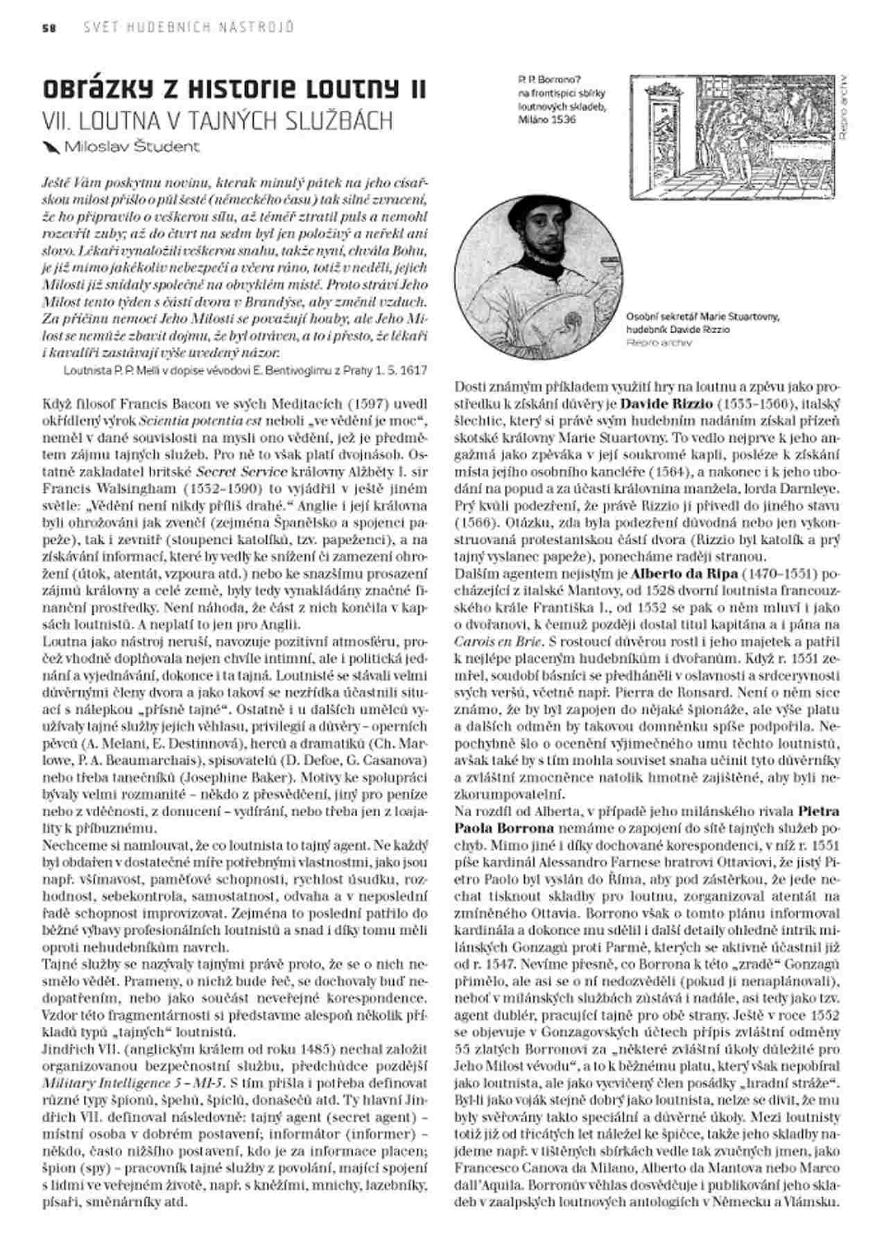 Loutna v tajných službách. Študent, Miloslav: Loutna v tajných službách. In: Hudební rozhledy 7/2014, s. 58-59.